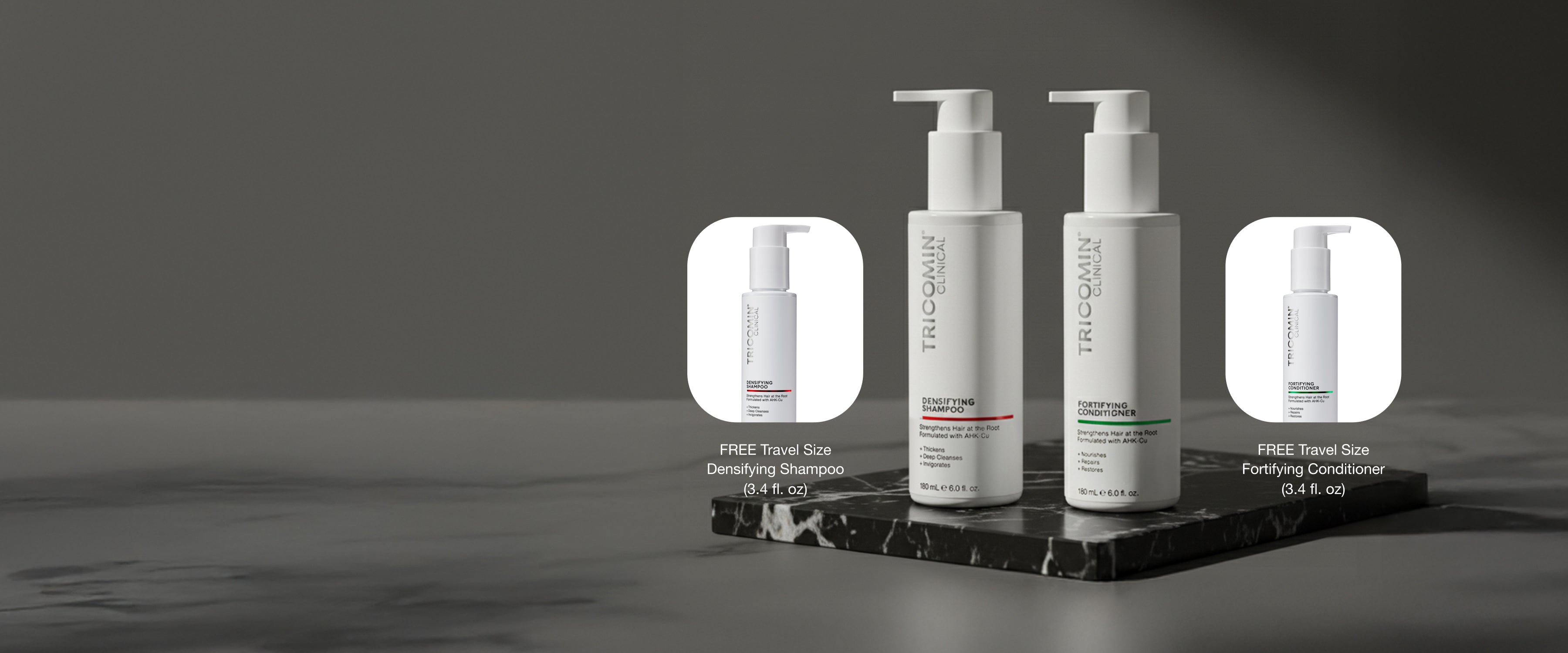 This Black Friday your favorite Tricomin duo comes with a gift! Purchase any full size Tricomin Shampoo or Conditioner and receive a complimentary travel size product!